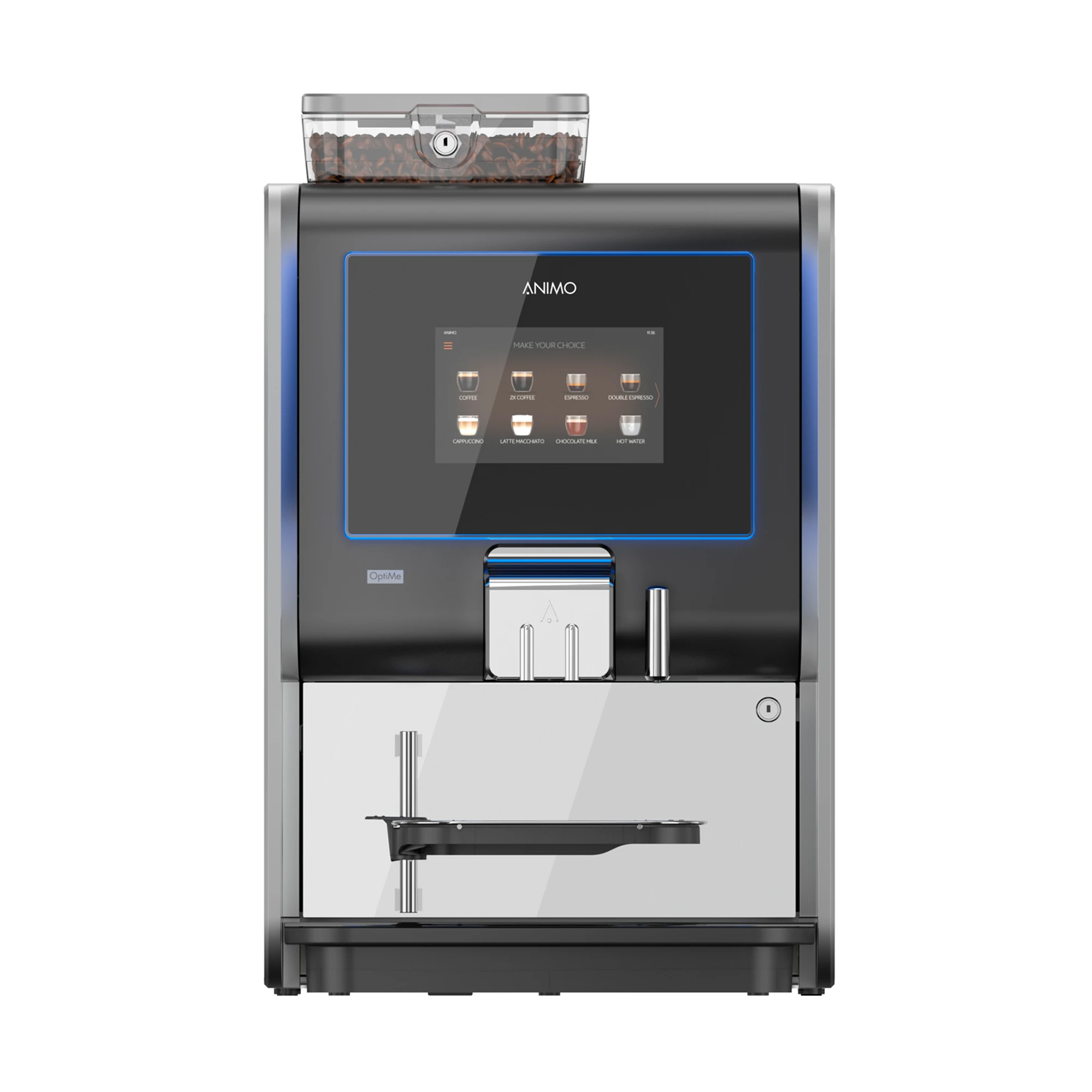 Met de optie voor een module voor verse melk, creëer ik in een handomdraai een cappuccino die barista-waardig is. En dankzij de intelligente Energy Save Mode en het A+ energielabel, geniet ik van mijn koffie met een gerust hart voor het milieu. De OptiMe: mijn partner in perfecte koffiemomenten, elke dag weer.